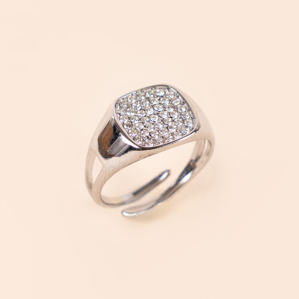 ANELLO REGOLABILE CON PARTICOLARE QUADRATO CON STRASS CENTRALE