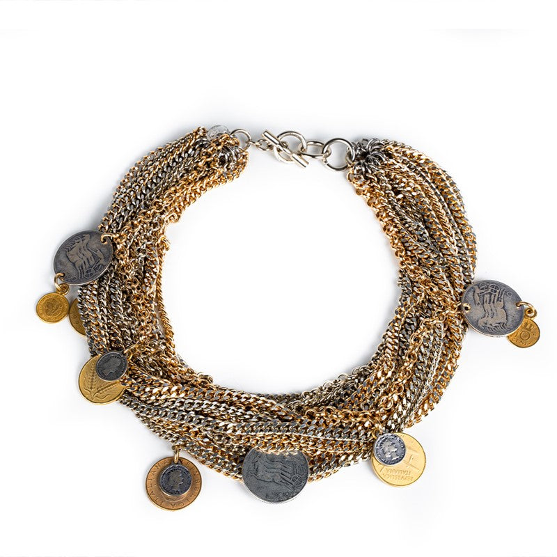 COLLANA GIROCOLLO MULTIFILO CON MONETE PENDENTI