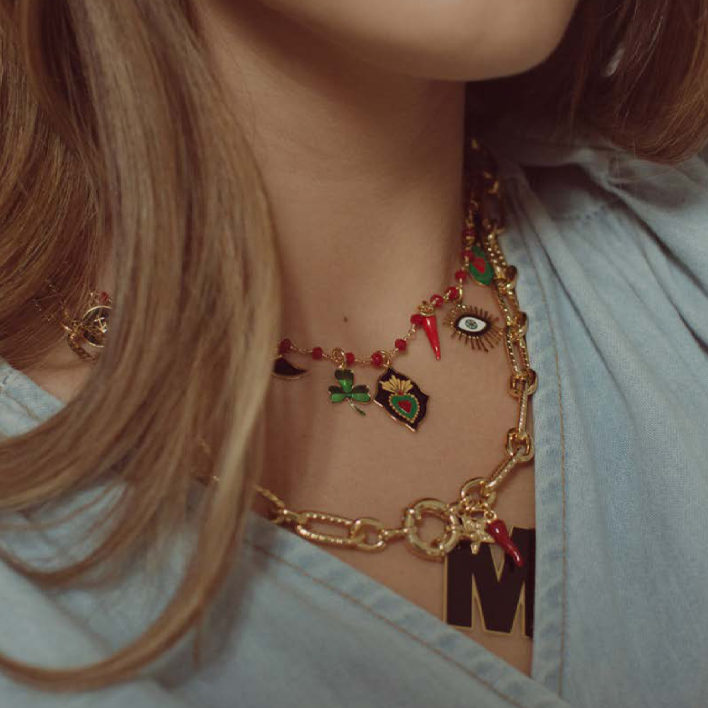 COLLANA GIROCOLLO CON LETTERE E CIONDOLI NAMELESS