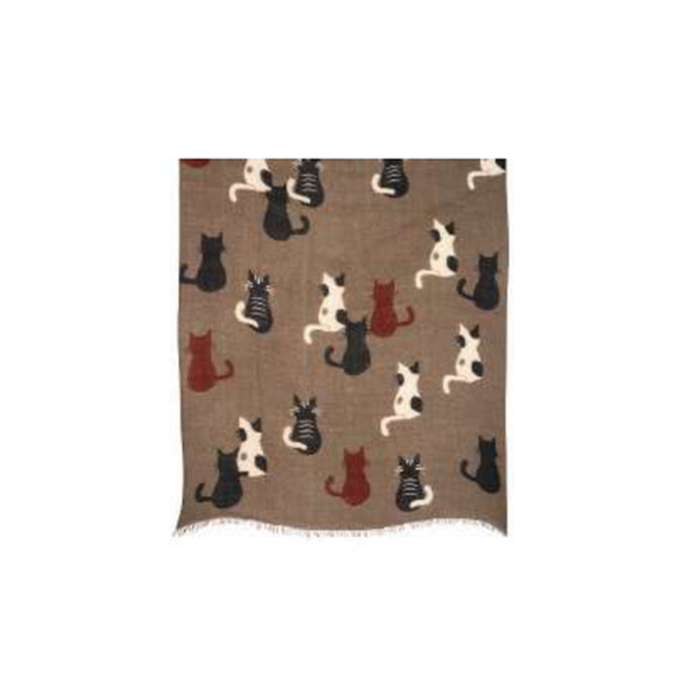 SCIARPA PESANTE IN LANA CON GATTI SEDUTI DI SCHIENA
