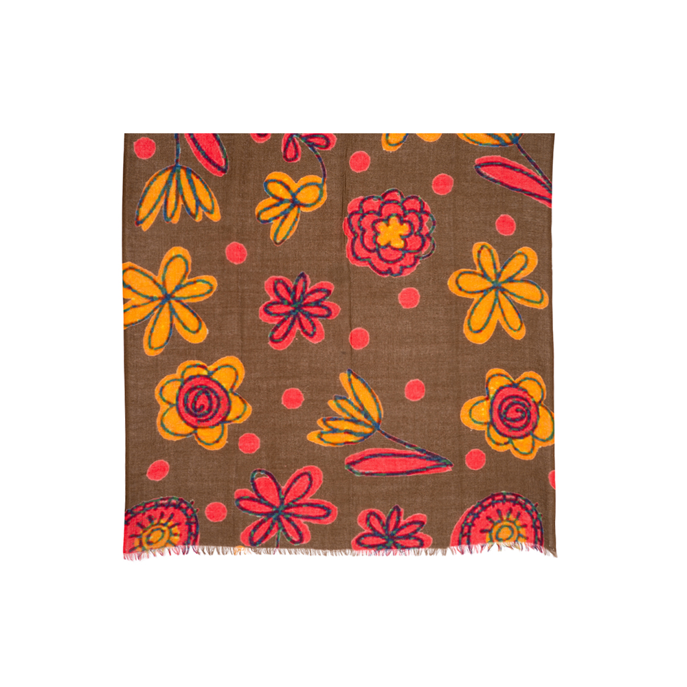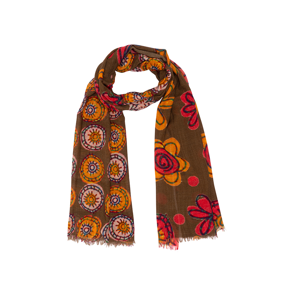 SCIARPA PESANTE IN LANA CON FIORI A MANDALA